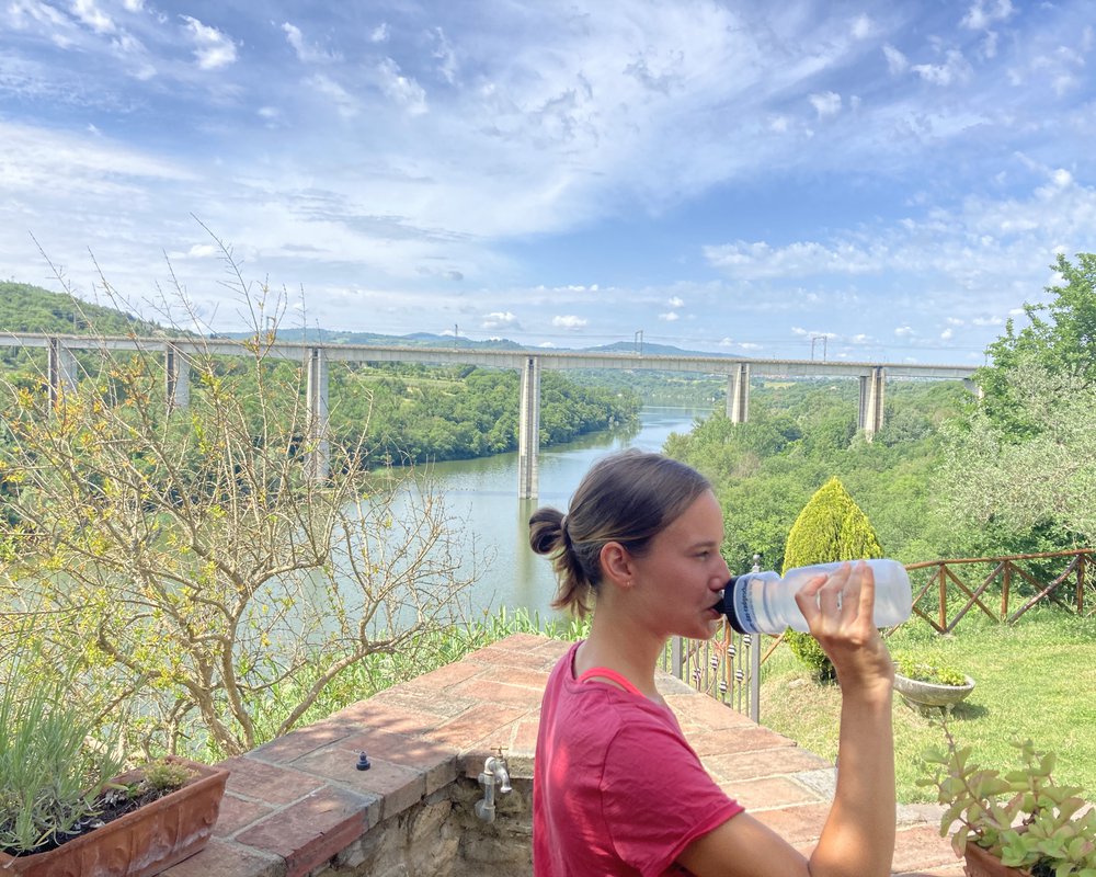 Nachdem wir also mal wieder über den Hunger gegessen hatten, legten wir noch eine abendliche Sportsession in Form von improvisiertem Tischtennis ein. Eine warme Dusche später schliefen wir auch schon hervorragend inmitten dieser Naturoase. Am nächsten Tag konnten wir unser morgendliches Porridge sogar mit frisch reifen Kirschen vom Kirschbaum erweitern und verließen nachdem wir alles gepackt hatten mit wehmütigem Herzen das Anwesen um nach Montefiascone weiterzureden.