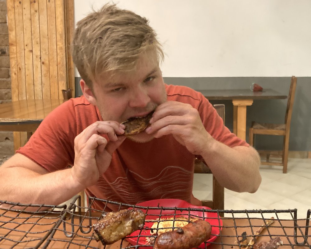 Wir hatten das Angebot, dass Alfonso uns Carne bringt, zwar mit Worten abgelehnt, aber Jareds Augen sprachen wohl eine andere Sprache, die Alfonso bestens verstand. In der zweiten Woche noch stolz beteuert, dass er bis jetzt zu 100% vegetarisch unterwegs ist, fiel Jared wie ein wildes Tier über das zähe Fleisch her (Vincent und ich haben uns an Tag 4 eine Salami gegönnt). Soviel dazu. Nachdem wir unsere Vitamin B-12 Speicher wieder aufgefüllt hatten, konnten wir wieder zu unserer gewohnten vegetarischen Kost zurückgehen und verdrückten noch die Zucchini-Nudeln.