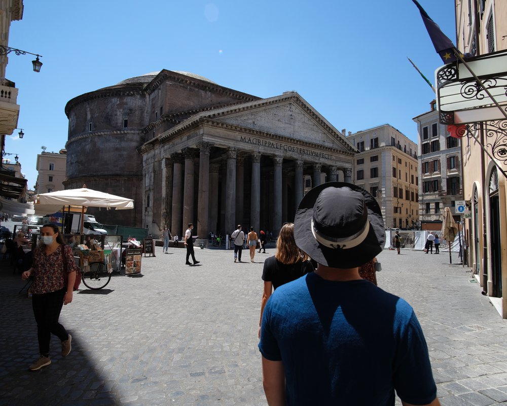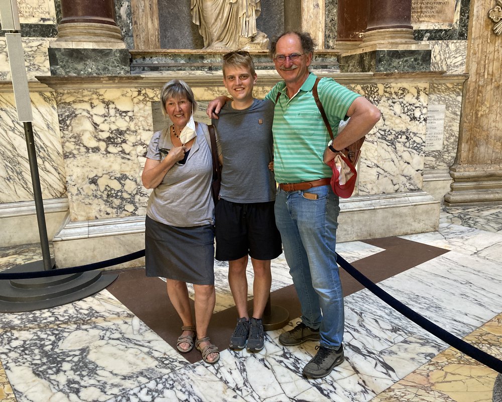 Weiter ging es über den Trevibrunnen - noch nie so leer erlebt - zum Pantheon. Als ich gerade wieder kläglich versuchte mit meinem Halbwissen mir etwas über die Geschichte des Pantheons zusammen zu dichten, trafen wir meinen alten Lateinlehrer mitten im Pantheon. Was für ein Zufall! Ich wusste zwar zufällig, dass er gerade in Italien im Urlaub war, aber dass er gerade heute in Rom und gerade jetzt im Pantheon war... Die Wiedersehensfreude war groß. Anschließend wurde ich aber erst einmal zur Abfrage ans Grab von Raffael gezerrt. An der Inschrift scheiterte ich aber - trotz Lateinabi - kläglich. Siggi lud uns zu seiner Familie ins Urlaubsquartier nach Montefiascone ein. Wir freuten uns schon riesig!