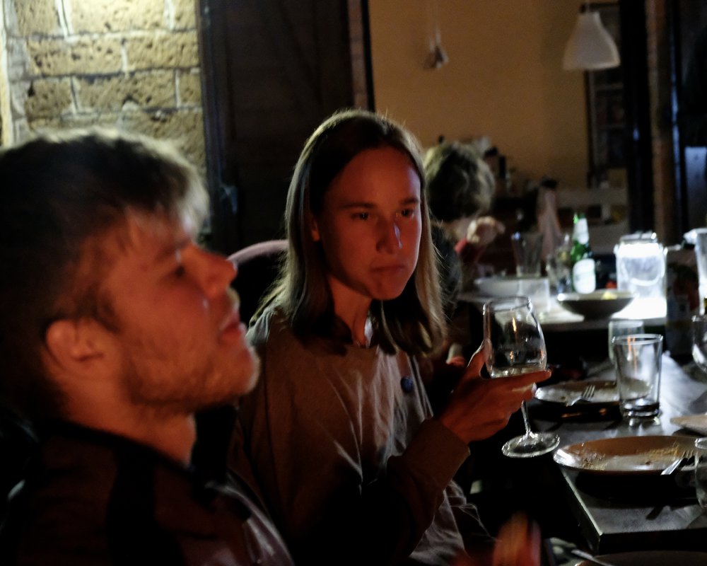 Interessant war auch, was er so erzählte über das Leben in Rondine. Die meisten Teilnehmer leben zu zweit in einem Zimmer, was natürlich auch Konfliktpotential bringt, jedoch auch den Austausch erzwingt. Alexis aus Georgien erzählte mir dann auch, was es bedeutet mit Menschen aus diplomatisch gesehen feindlichen Gebieten zusammenzuleben. Er sagte jedoch, dass er den Konflikt mit Russland sehr gut von der persönlichen Beziehung zu den dortlebenden Russen unterscheiden kann. Nach einer guten Weile kam schließlich Katha und Juliana wieder dazu