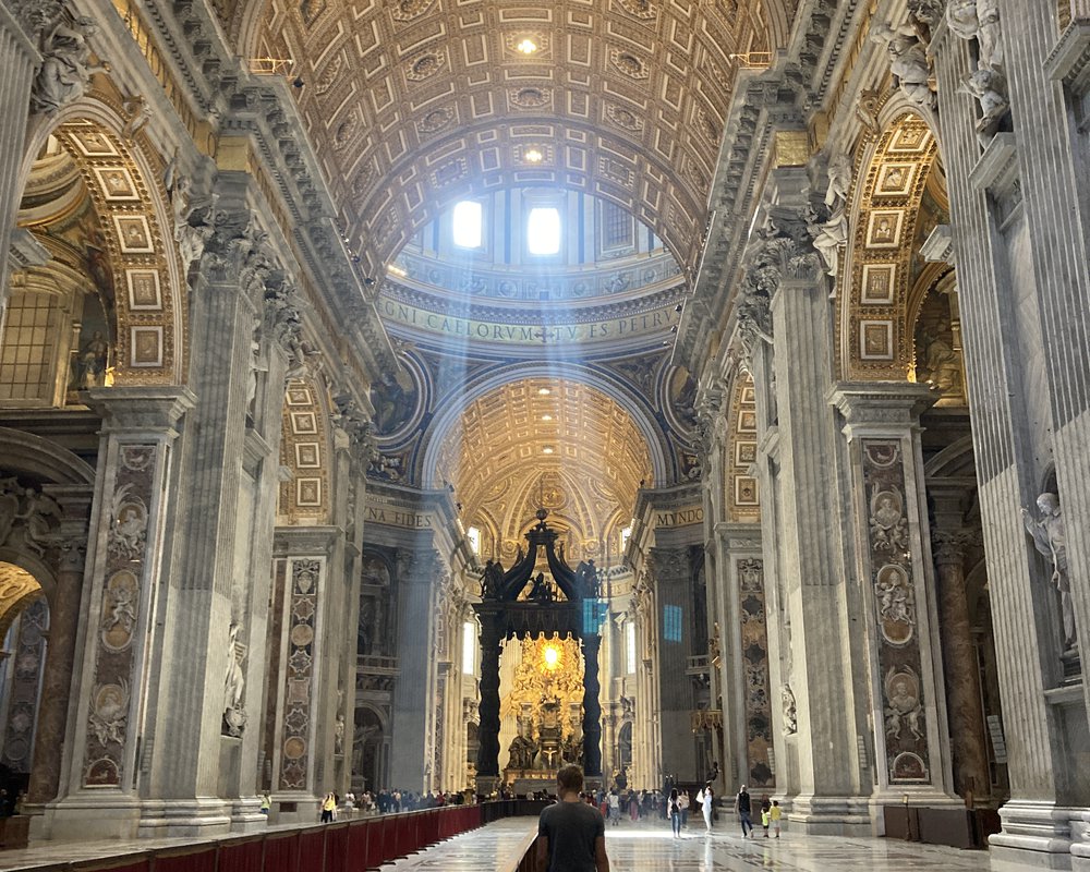Wir nutzten noch das weitestgehend touristenfreie Rom und tranken einen (sehr starken) Aperol Spritz auf der Engelsburg und spazierten in Richtung Vatikan, wo wir (ohne Schlange!!!) den Petersdom besichtigten. Wir waren natürlich erschlagen von der Größe dieser Kirche - ein Pfeiler ist größer als die komplette Kirche San Carlo, aber auch etwas angeekelt wie pervers diese Kirche ist. Da schäme ich mich fast ein bisschen katholisch zu sein.