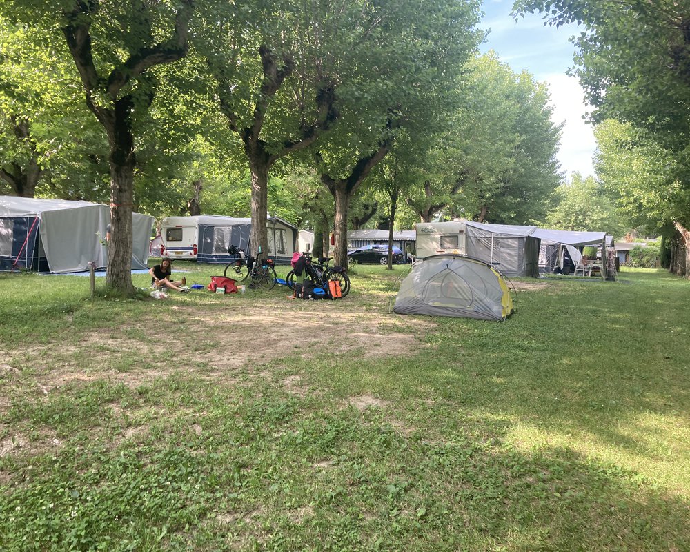 Abends buchten wir uns für eine Nacht auf einem Campingplatz am Gardasee ein. Hier ist es nur sehr schwer möglich, einen schönen Platz zum schlafen außerhalb eines Campingplatzes zu finden, da die Touristendichte sehr hoch ist. So konnten wir einen schönen Abend am See genießen, schwimmen und einen Aperol Spritz in der Strandbar schlürfen.