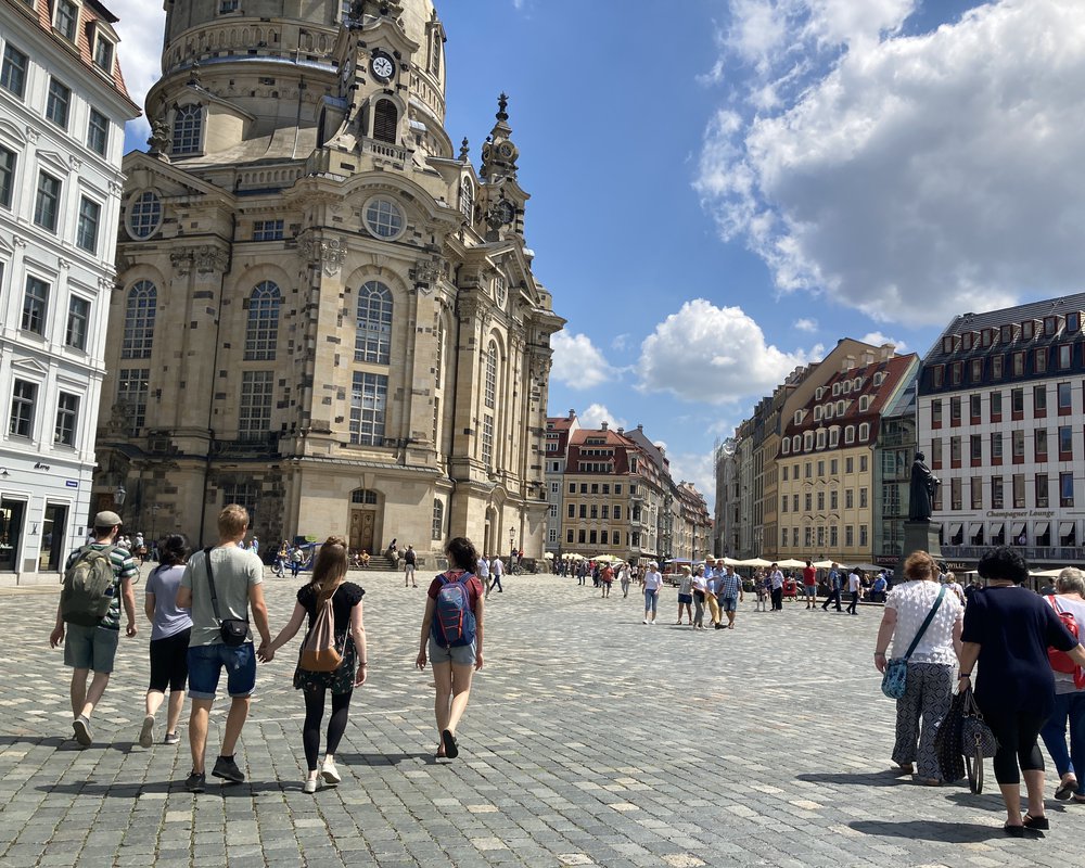 In Dresden stand ein bis dato komplettes Novum bevor: Romantik! Die Partnerinnen von Moritz und Vincent kamen zu Besuch und so genehmigten wir uns planmäßig einen kompletten freien Samstag und wollten am Sonntag wieder weiterradeln. Bevor es zum herzigen Wiedersehen kam, stand zuerst noch ein Besuch bei Kloses an. Diese Familie sind noch alte Bekannte von Vincent‘s Familie und so waren wir dort eingeladen zum Pizza essen. Die Stärkung kam mehr als gelegen und wir genossen es sehr, die Familie kennenzulernen. Der reiseerfahrene Vater Joachim hatte sogar so spannende Geschichten zu erzählen, dass unsere Reise fast mickrig dagegen wirkt. Zum Beispiel reiste er damals in einer Gruppe von Studenten aus der DDR bis nach Tadschikistan. Um dies zu ermöglichen wurde unter anderem ein Schaffner in Sotschi geschmiert, Kartenmaterial heimlich organisiert und bei der Rückreise dann das Verhör der Behörden offensiv mit Sowjet-Union Schwärmerei überstanden… Wahnsinn!