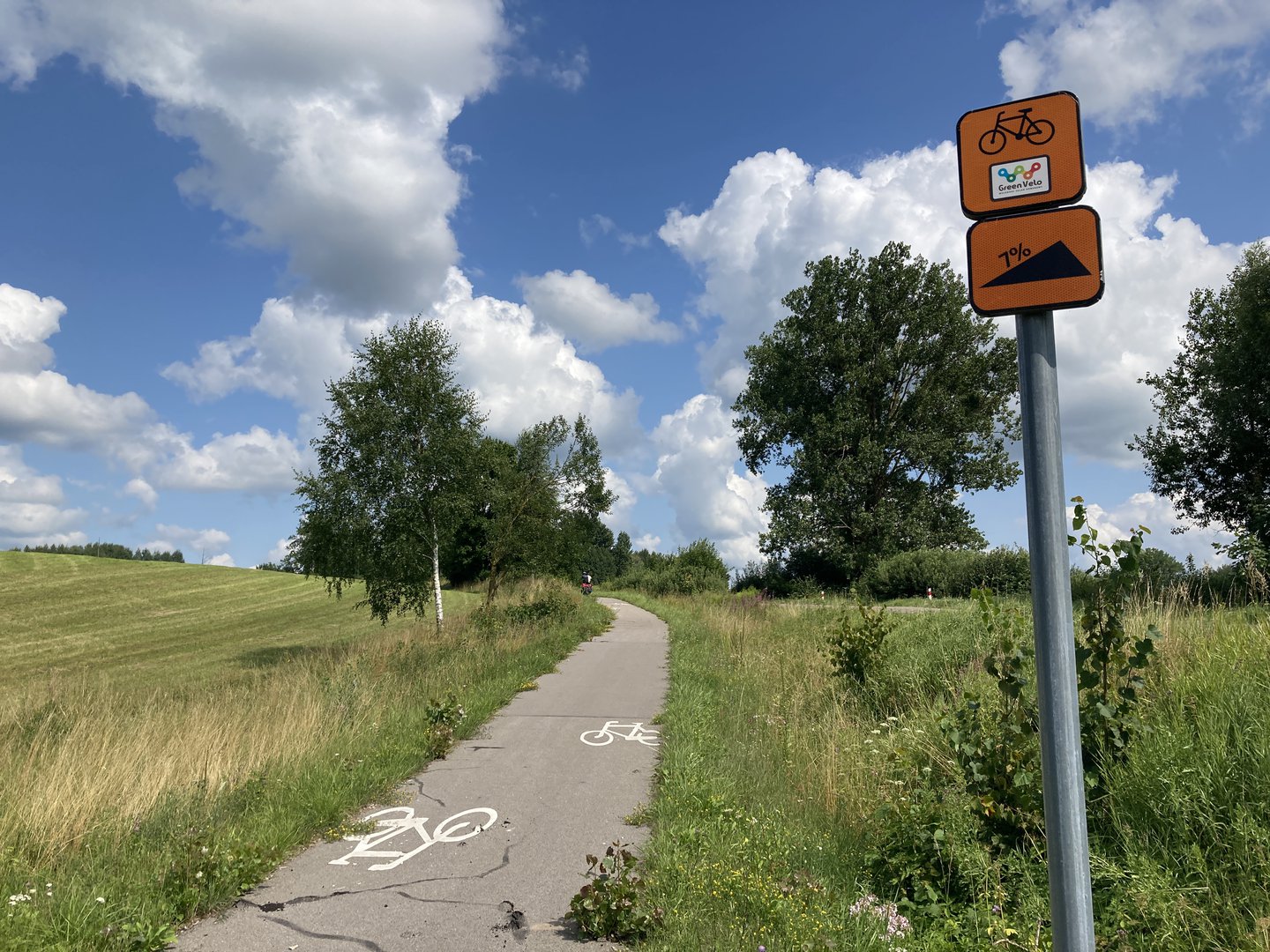 Während unserer Reparaturgespräche empfahlen uns die beiden jungen Eltern den „Green Velo“, welcher ziemlich genau zu unserer Streckenplanung passte und außerdem eine tolle Infrastruktur mit sich bringe.
