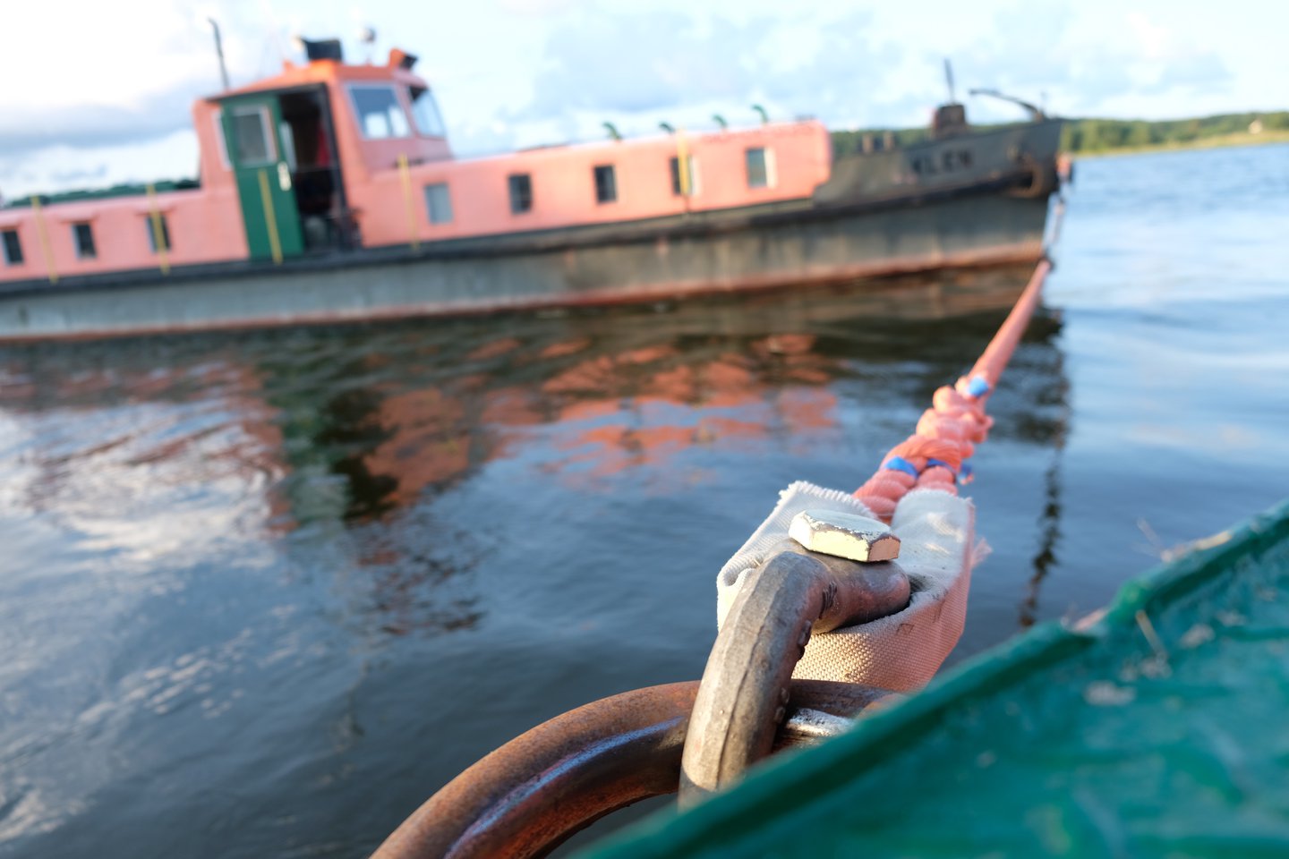 Am nächsten Morgen hatte ich gerade Frühstück und Kaffee gekocht - Jared hatte sich schon zu mir gesellt, während Vincent noch von einer neuen Felge träumte - da kam eine Gruppe von drei Männern auf unseren Steg. Sie witzelten untereinander und hatten insgesamt eine geschäftige aber hervorragende Stimmung an den Tag gelegt. Bewaffnet mit Motorsensen und Laubgebläsen begannen sie sofort wild auf uns einzureden. Zwar war der Tonfall entspannt und fröhlich, aber wir begannen trotzdem etwas hektisch unser Zeug aus dem Weg zu räumen. Auch Vincent war plötzlich in der Vertikalen und verstaute bereits die Schlafsäcke. Die Männer winkten nur ab, bedeuteten uns sitzen zu bleiben und (so die Vermutung) wünschten uns einen guten Appetit.