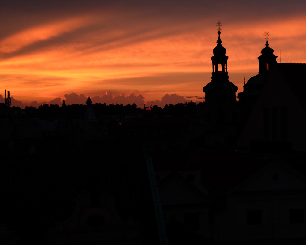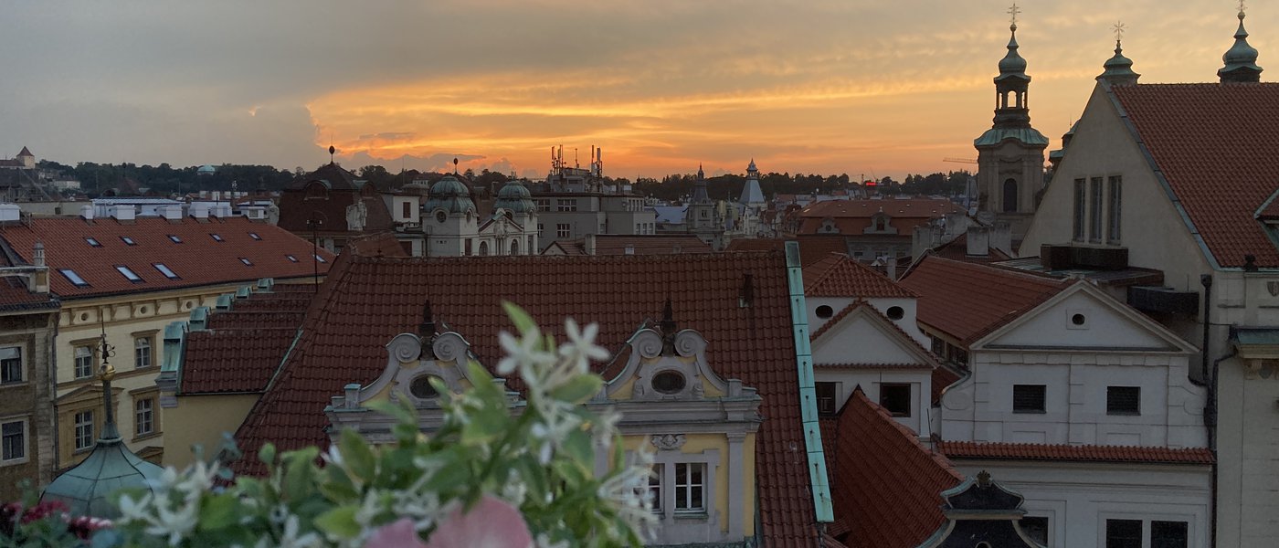 Gestern hatte uns der Bändiger des Pumas noch den wertvollen Tipp zur schönsten Aussicht in Prag gegeben und zwar sei diese auf der Dachterrasse des U Prince, direkt am Altstädter Ring gelegen. Als wir aber selbst mit unserem feinsten Hemd (ein Merino-Decathlon-Shirt) davor standen, waren wir skeptisch ob wir überhaupt hoch gelassen werden. Da sich aber keiner so richtig zuständig für uns fühlte und uns keiner aufhielt, stiegen wir mal in den Aufzug und drückten auf 7.